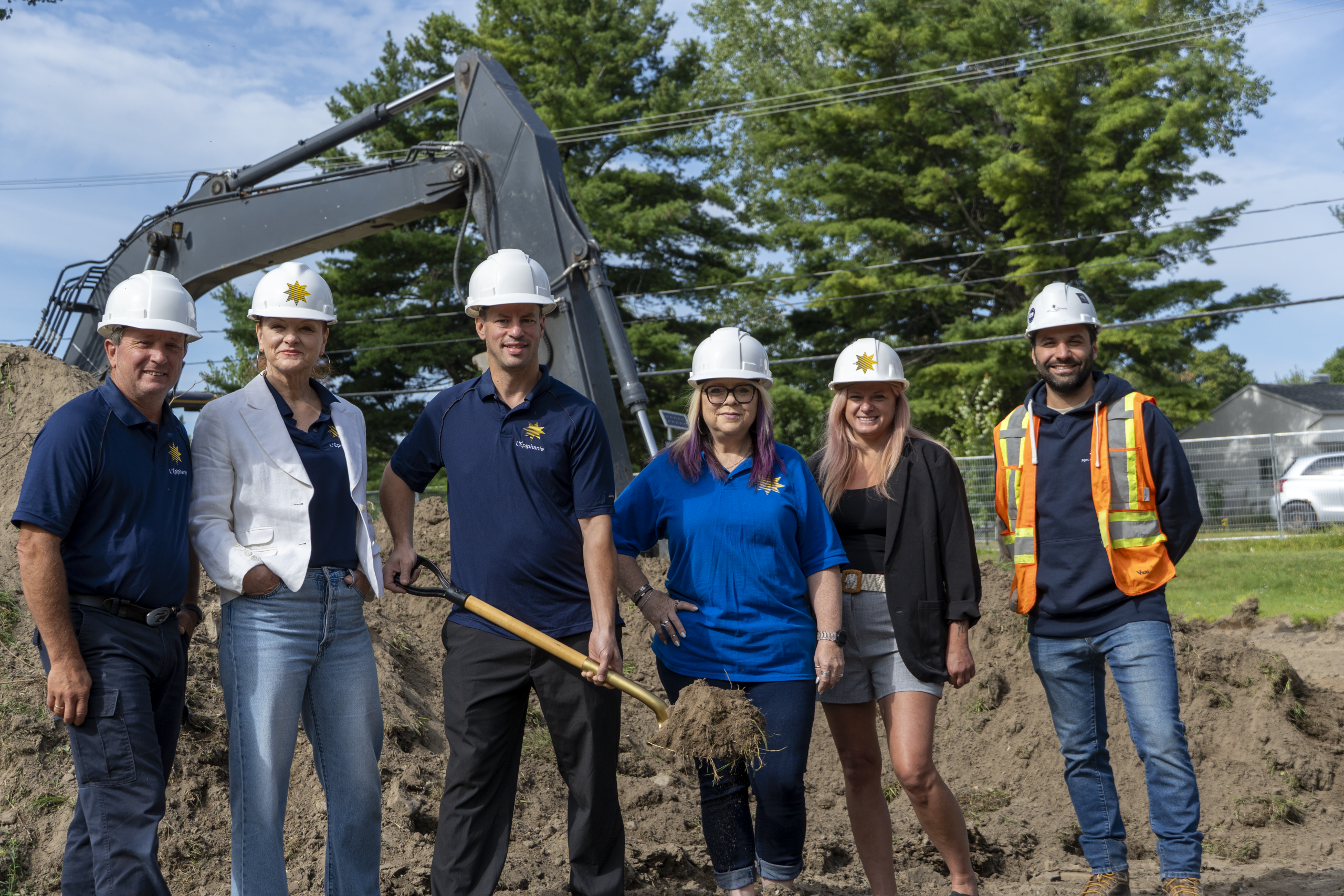 Sur la photo : Les élus municipaux, accompagnés des responsables du projet, qui ont procédé à la traditionnelle pelletée de terre du chantier. De gauche à droite : Rémi Lavallée, chargé de projets chez Multi-Paysages, Stéphane Amireault, conseiller, Vicky Robitaille, conseillère, Benoit Marsolais, directeur des travaux publics, Marjorie Legrand, directrice adjointe aux loisirs et à la culture, Steve Plante, maire, Manon Leblanc, conseillère.