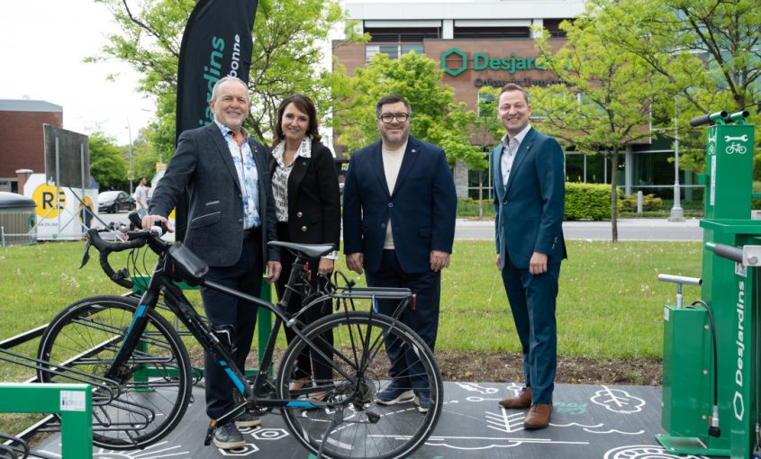 La Ville de Terrebonne et la Caisse Desjardins de Terrebonne annoncent une collaboration inspirante qui a permis d’enrichir les installations du parc Saint-Sacrement, au bénéfice des citoyens du secteur. Grâce à ce partenariat, deux bornes de réparation, une pour les vélos et une pour les planches à roulettes, ont été installées, facilitant ainsi la pratique