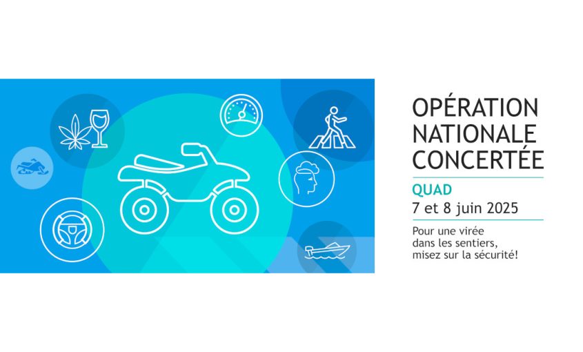 L’ensemble des services de police du Québec, intensifiera ses interventions les 7 et 8 juin prochains dans le cadre d’une opération nationale concertée récréotouristique ciblant les quadistes ayant un comportement pouvant compromettre leur sécurité et celle des autres usagers. Les policiers réaliseront diverses interventions, que ce soit dans les sentiers, aux croisements des chemins publics,