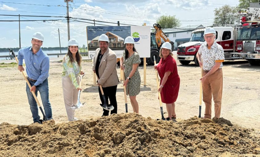 On a officiellement lancé aujourd’hui les travaux de construction du tout nouvel Hôtel de Ville de la municipalité de Saint-Sulpice. Il s’agit d’un immeuble de 9,7 M$ devant abriter une caserne de pompiers et pour lequel le gouvernement provincial a consenti une subvention de plus de 6 M$. Réjean Turgeon.