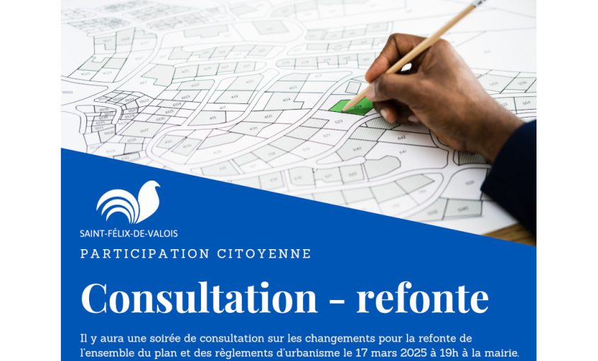 Le conseil municipal de Saint-Félix-de-Valois vient d’adopter le premier projet de règlement de plusieurs règlements municipaux dans le cadre de la refonte de l’ensemble du plan et des règlements d’urbanisme de la Municipalité. L’objectif est de se conformer au schéma d’aménagement de la MRC de Matawinie. Une soirée de consultation publique se tiendra d’ailleurs le