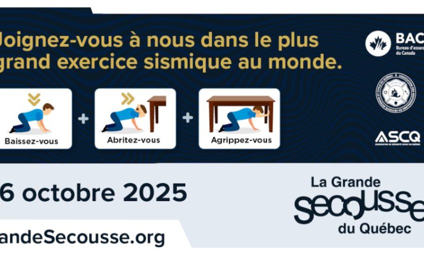 Pour une 3ᵉ année consécutive, la Ville de Saint-Charles-Borromée invite tous ses citoyens à prendre part à la Grande Secousse du Québec, jeudi, à 10 h 16 précisément. Cet exercice de préparation aux séismes rassemblera des milliers de participants partout au Québec afin de pratiquer des gestes simples, mais essentiels, qui peuvent sauver des vies