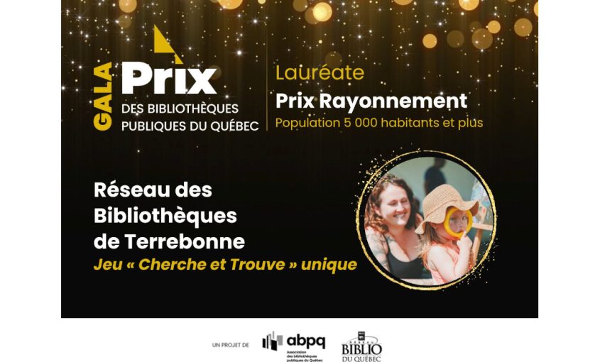 Lanaudière compte deux lauréats au Gala des Prix des bibliothèques publiques du Québec qui a eu lieu hier. Le prix Prix Rayonnement est allé à la bibliothèque de Terrebonne pour les villes de 5000 habitant et plus. Son jeu « Cherche et Trouve » illustrant les services en bibliothèque a retenu l’attention Prix Ambassadrice-Ambassadeur revient à Ismaël Bellil