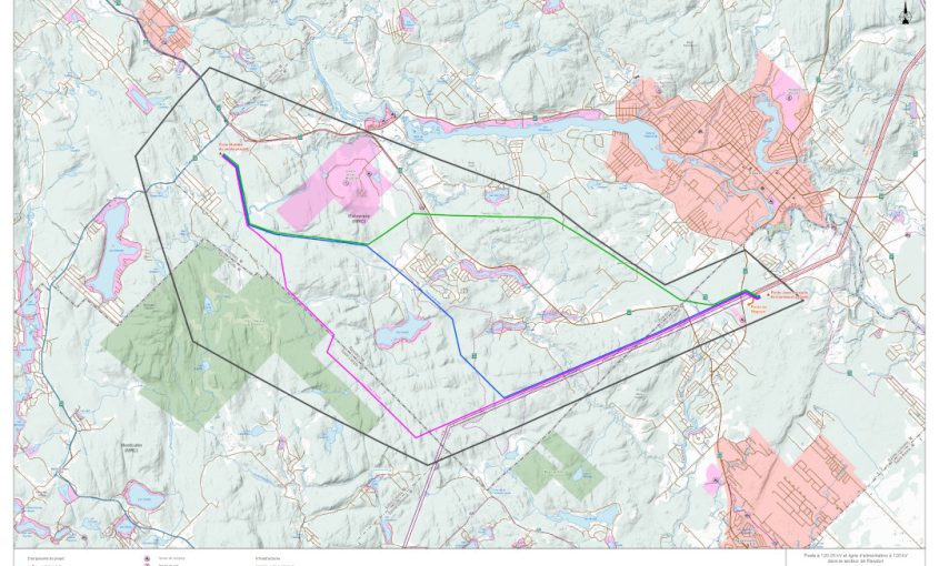 Hydro-Québec consulte la population ce soir à Rawdon et dévoilera trois tracés de ligne électrique longeant ses lignes existantes à partir du futur poste Jean-Jacques Archambault de Sainte-Julienne. Les tracés varient de 15 km à 17km. Un des tracés impacte les milieux humide, un deuxième est près du milieu bâti et le troisième est plus