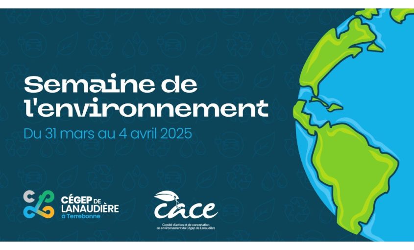 Le Cégep à Terrebonne lance la cinquième édition de la Semaine de l’environnement, qui se tiendra du 31 mars au 4 avril. Cet événement, accessible à l’ensemble de la population propose une programmation autour des grands enjeux écologiques. Durant toute la semaine, conférences, ateliers, projections et discussions permettront d’aborder des thématiques essentielles telles que la