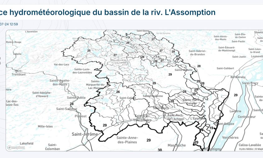 Dans le cadre d’un projet pilote de surveillance hydro météoroloqique du bassin de la rivière l’Assomption, des instruments permettront de mesurer la qualité de l’air et la détection de glissement de terrain dans le grand Joliette. On écoute Pierre Corbin, président d’Hydro-Météo : Ces nouveaux équipements s’ajoutent aux 50 stations déjà installées dans le