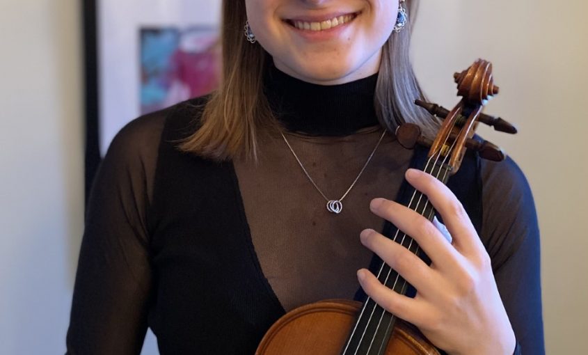 Emma Poulin, violoniste âgée de 19 ans, a gagné les grands honneurs de la finale locale de Cégeps en concert au Cégep à Joliette, le 7 avril dernier. Étudiante du double DEC en Sciences de la nature et Musique, Emma étudie le violon dans la classe d’Annie Parent. Elle a obtenu le premier prix du