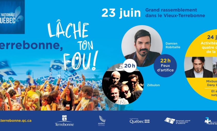 La Fête nationale des Québécois sera doublement célébrée à Terrebonne cette année, édition qui est la première post-pandémie. Avec son thème «Lâche ton fou», ce sera une édition toute spéciale de l’avis du maire, Mathieu Traversy. Le 23 juin, le traditionnel spectacle du Vieux-Terrebonne permettra au groupe Zébulon et à l’artiste Damien Robitaille d’offrir des