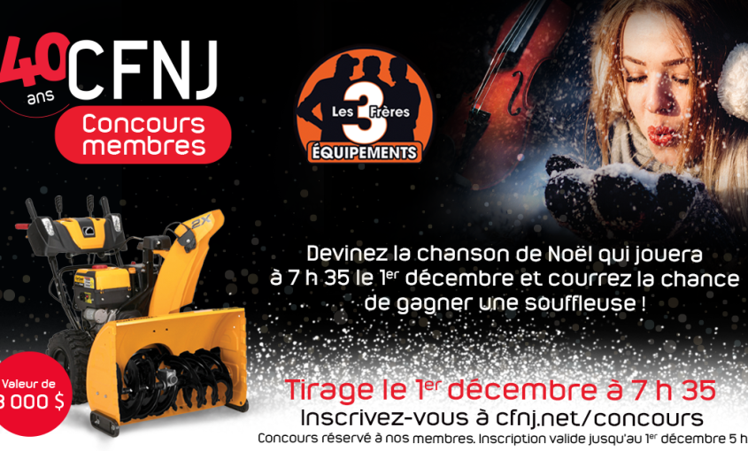 Revoyez le lancement du concours avec Marie-Pier Beauparlant et Alain Rivard : Pour participer : https://cfnj.net/concours-souffleuse/ Pour devenir membre de CFNJ : https://cfnj.net/devenir-membre/