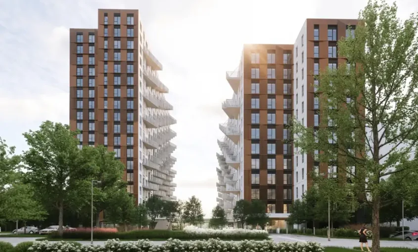 Le plus haut complexe immobilier en bois sera construit à Terrebonne. Il s’agit de deux tours dont une de 12 étages, un projet de 71 millions de dollars piloté par le Fonds de solidarité de la FTQ et qui devient le plus important projet locatif de la sorte au Québec. Compte tenu de la hausse des