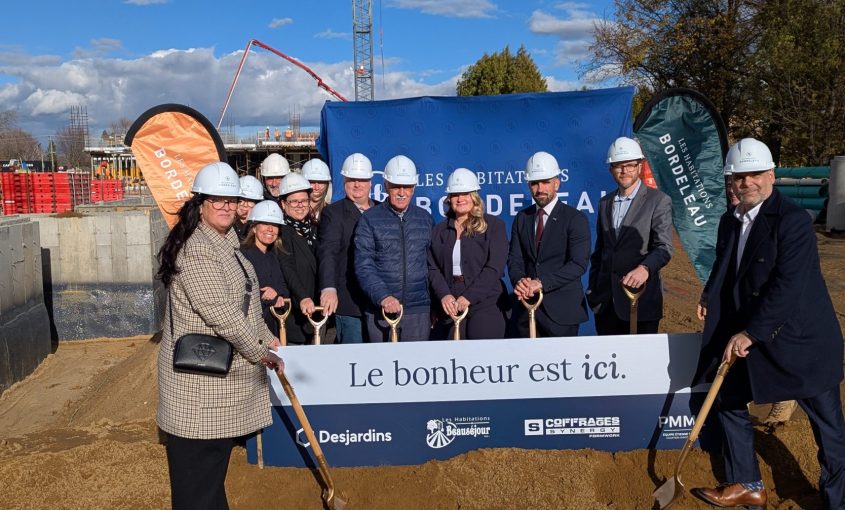 Première pelletée de terre aujourd’hui d’un résidence évolutive des Habitations Bordeleau comprenant 223 logements autonomes et semi-autonomes dont 78 unités de soins, une clinique médicale avec une dizaine de médecins et une Pharmacie Uniprix, un investissement de 68 millions de dollars. La résidence aura les dernières technologies développées par le centre d’expertise et de recherche