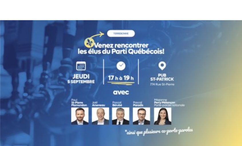 Le Parti Québécois ne perd pas de temps à vouloir courtiser l’électorat de Terrebonne, qui sera vacante avec le départ annoncé du député ministre Pierre Fitzgibbon. Ce soir, il y aura une assemblée publique où les députés flanqués de leur chef Paul St-Pierre Plamondon seront présents. Plus tôt hier, Paul St-Pierre Plamondon a indiqué qu’il