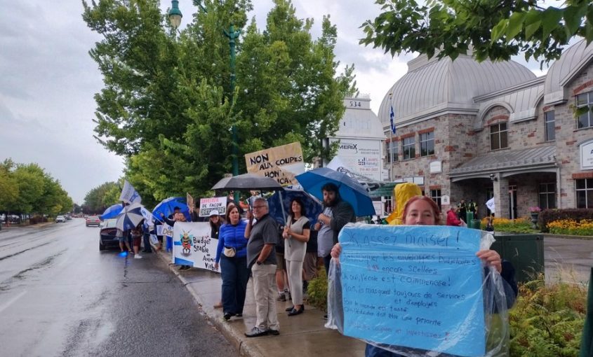 Les compressions en éducation soulèvent la grogne populaire. On en a parlé aux nouvelles, il y a eu une manifestation en fin de journée hier (jeudi)devant le bureau de la ministre de l’enseignement supérieur Pascale Déry. Réjean Turgeon s’y est rendu et a rencontré Adam Pétrin, enseignant en techniques de travail social et Mégane Bourdon,
