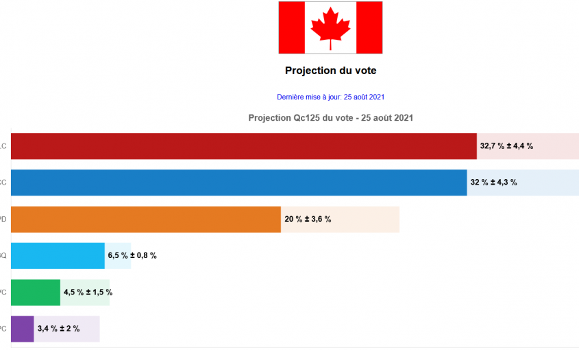 QC 125 publie de nouvelles projections du vote populaire en vue du scrutin fédéral du 20 septembre. Dans la région, le Bloc québécois domine largement dans Joliette et Montcalm avec des avances de plus de 30 points devant le Parti Libéral. Dans Berthier/Maskinongé, le Bloc commence à se distancer du NPD avec une avance de