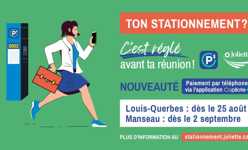 La Ville de Joliette annonce l’implantation d’un projet pilote de stationnement intelligent au parc Louis-Querbes, dès le 25 août, et au stationnement Manseau, dès le 2 septembre. L’application Copilote+ permettra d’effectuer le paiement de son stationnement à distance, la prolongation du temps de stationnement en cours et l’arrêt du temps non utilisé et la conservation