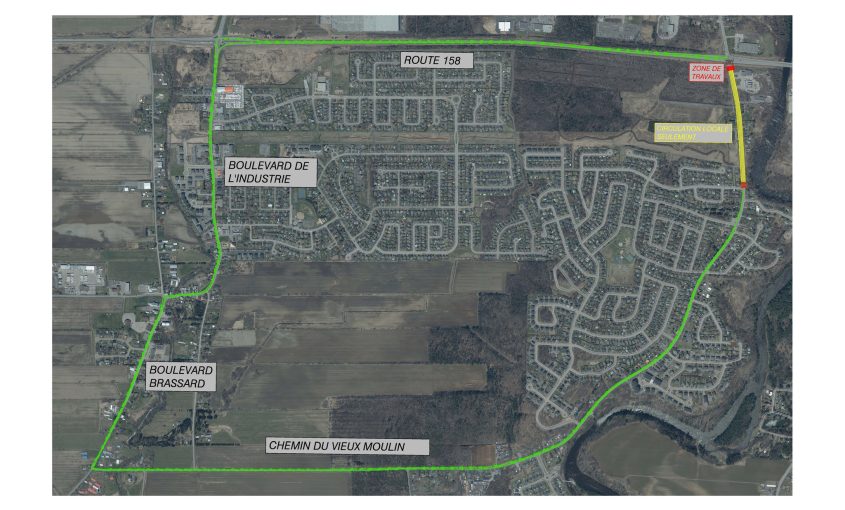 À compter de lundi, 19 h, un casse-tête est à prévoir pour plusieurs automobilistes qui empruntent la rue St-Pierre Sud, près de la Route 158. La porte d’entrée du Carrefour du Moulin sera fermée jusqu’à 10 h, mardi matin, pour des travaux visant à changer un ponceau. Le détour sera fera par Saint-Paul. Le même