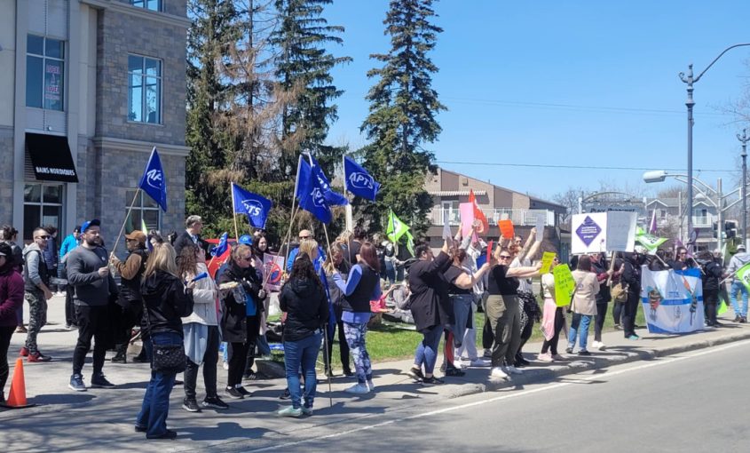 En ce 1er mai, Journée internationale des travailleuses et travailleurs, on assiste à des manifestations syndicales un peu partout. En fin d’avant-midi, des représentants de plusieurs centrales ont convergé vers le bureau de comté de François Legault. Réjean Turgeon y a rencontré le porte-parole national pour Lanaudière de l’Alliance du personnel professionnel et technique, Steve