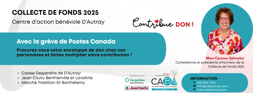 Christian Paquin-Coutu, du Centre d’Action Bénévole d’Autray, nous parle de la grande campagne de financement qui bat son plein. ⬇