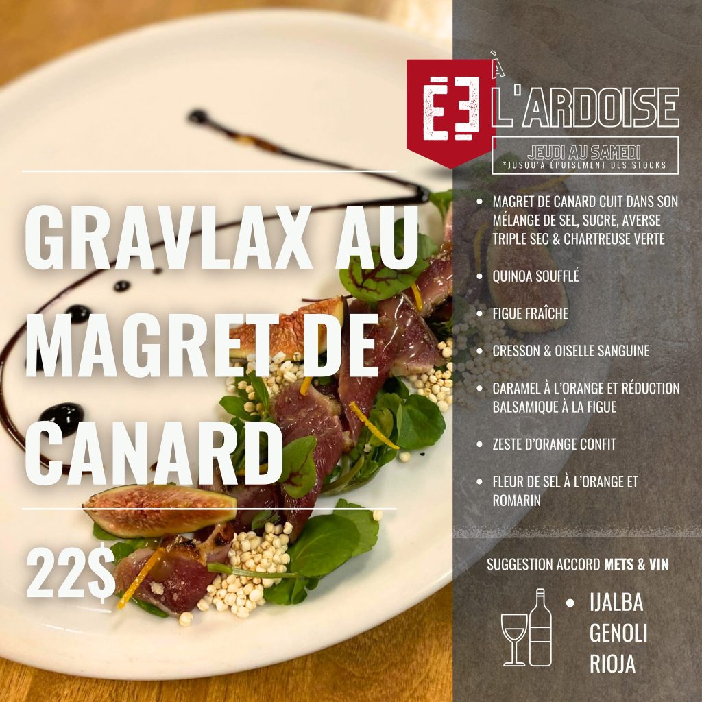 Gravlax au magret de canard et Pizza italienne à l’ardoise de L’Échappée, jusqu’au 17 janvier ! Maude H. nous en jase ! ⬇