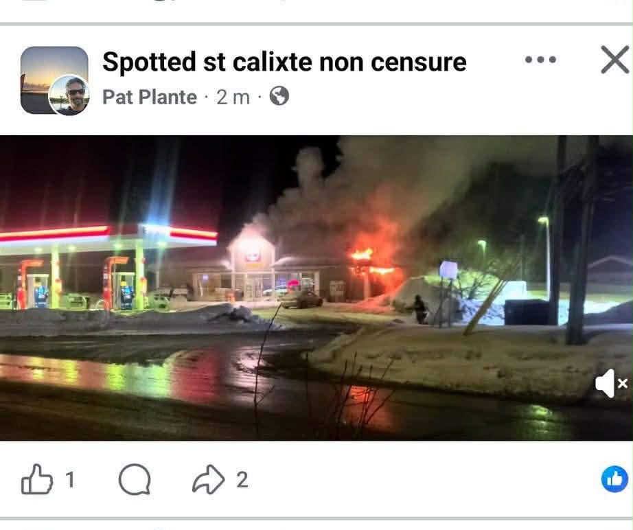 Un incendie ravage ce soir un dépanneur Couche-Tard à Saint-Calixte.