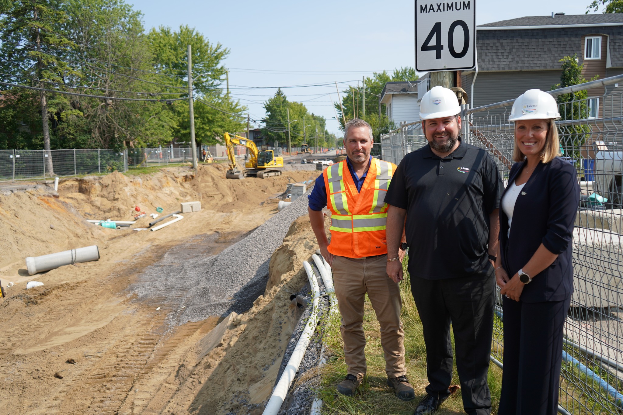 Sur la photo : Le maire Pierre-Luc Bellerose a visité le site pour constater l’avancement des travaux. De gauche à droite, le coordonnateur des services techniques, Gilles Tremblay, le maire, Pierre-Luc Bellerose, et la directrice générale, Solie Masse.