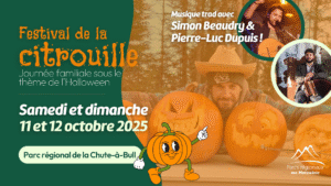 Le Festival de la citrouille s’en vient les 11 et 12 octobre au Parc Régional de la Chute à Bull à Saint-Côme !