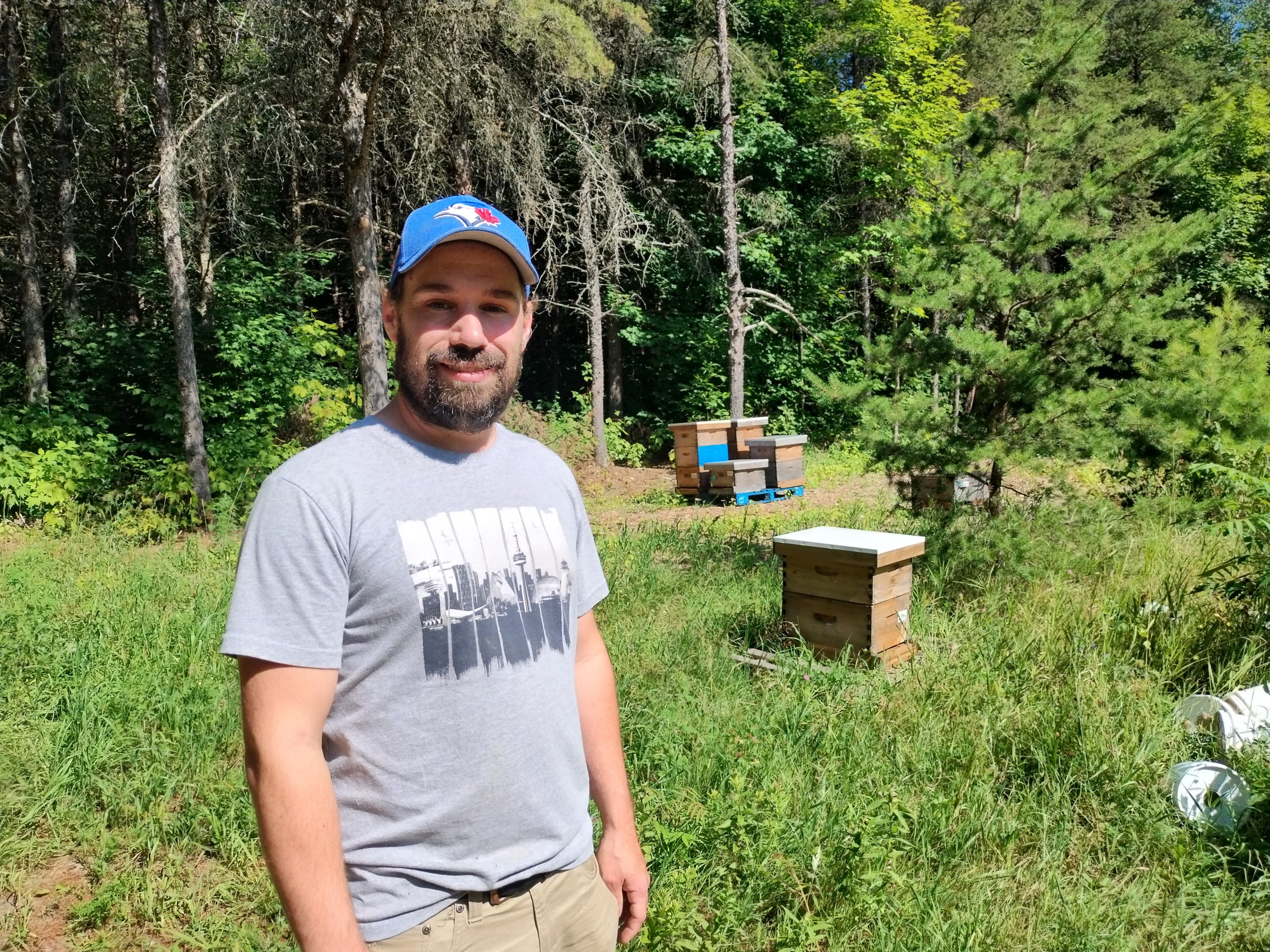 Sur la photo: Simon Duval, apiculteur et deuxième vice-président de l’UPA Lanaudière, dans un rucher adjacent à sa future miellerie de Mascouche.