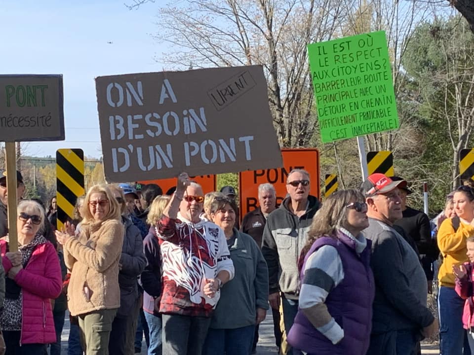 Quelques 200 personnes ont manifesté dimanche pour dénoncer la fermeture du pont de la rivière noire sur la route 347.