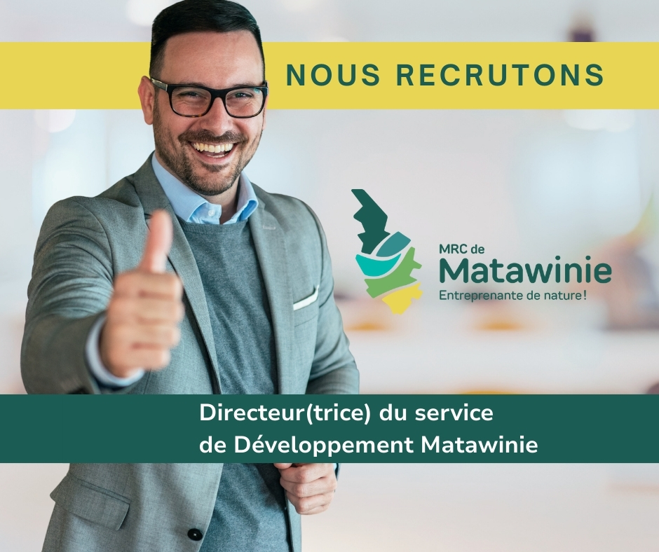 La MRC de Matawinie recherche une personne pour combler le poste à la direction du service de Développement Matawinie. La mission du/de la titulaire du poste : piloter des projets structurants et contribuer au rayonnement économique, culturel et social de notre région. Sachez qu’il s’agit d’un poste à temps plein dont la rémunération varie entre 103 000 $ et 128 000 $ annuellement. Ça vous interpelle ? Vous avez jusqu’au 14 décembre pour postuler ici : https://mrcmatawinie.org/carriere.