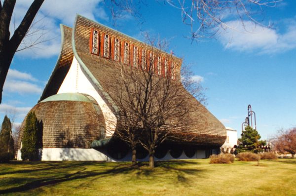 L’ensemble paroissial Notre-Dame-des-Champs regroupe notamment une église, un presbytère et une sacristie dans une composition architecturale audacieuse. D’ailleurs, l’église a été surnommée « La Sacoche » justement par son architecture particulière.
