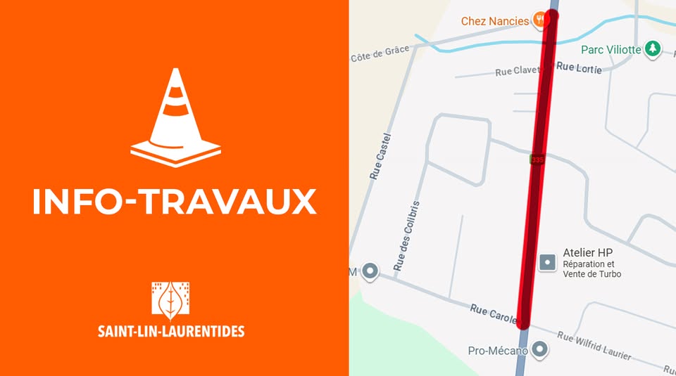 Des travaux d’asphaltage seront réalisés sur la route 335 entre la côte de Grâce et la rue Carole à Saint-Lin-Laurentides les 18 et 19 août.