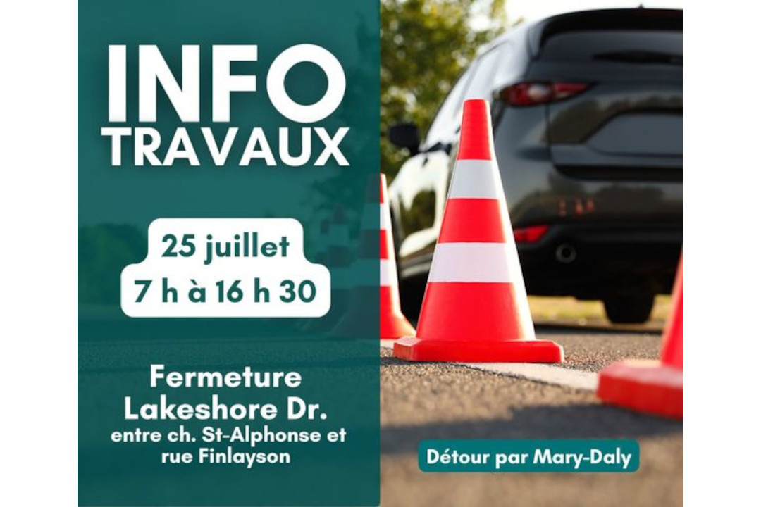 À Rawdon, des travaux visant à colmater une fuite dans le réseau d’aqueduc force la fermeture de l’artère du Lakeshore Drive entre le chemin St-Alphonse et la rue Finlayson, à compter de 7h00 et ce jusqu’à 16h30.