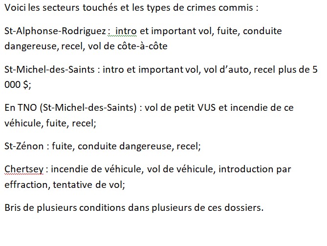 À la suite de l’arrestation de Serge Breton-McGinnis et Kelly Guérard, deux fugitifs en cavale, les enquêteurs affirment avoir pu les relier à 14 événements criminels commis dans la MRC Matawinie entre le 16 novembre et le 18 décembre.