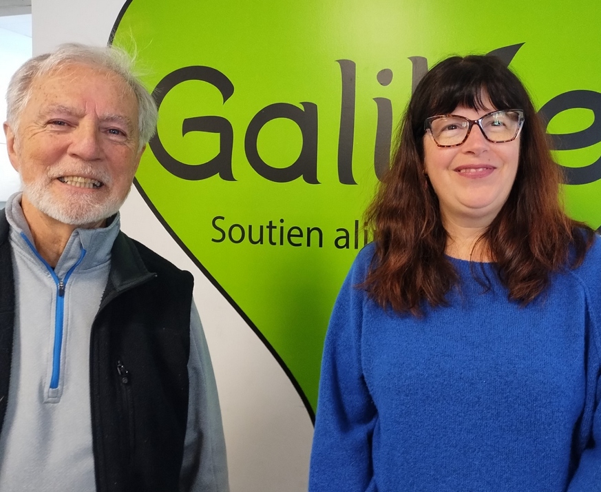Sur la photo: Réal Desmarais, bénévole, et Marie-Eve Plante, directrice de l’organisme de soutien alimentaire Galilée à Terrebonne.
